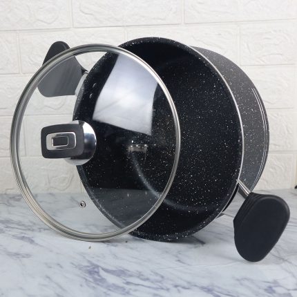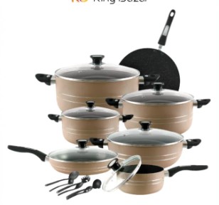 - The set appears to be non-stick, which is a common feature in modern cookware for easy cleaning.