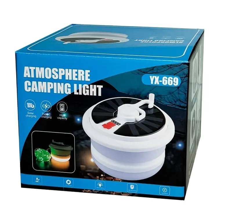 Atmosphere Camping Light, a Portable, Rechargeable LED Lantern Designed for Outdoor Use