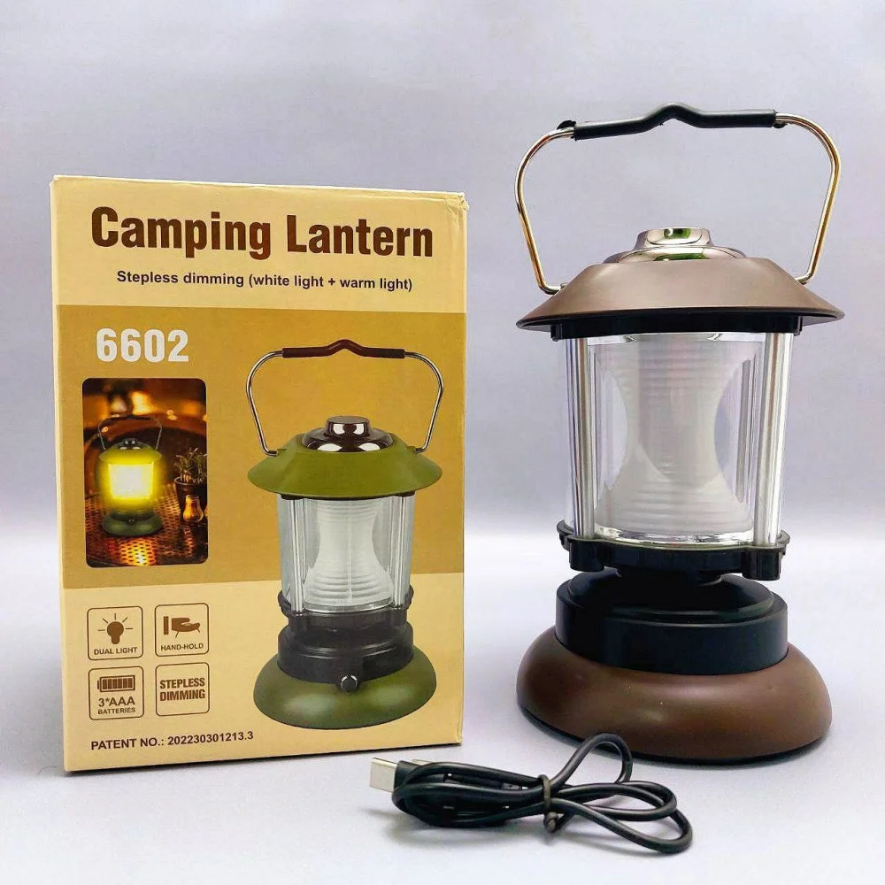 righten your outdoor adventures with the 6602 Camping Lantern, designed for versatility, portability, and convenience. With both white and warm light options, this lightweight hand-held lantern is perfect for camping, hiking, or emergency use at home.