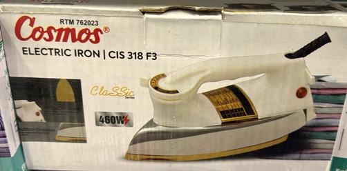Get perfectly pressed clothes with minimal effort using the Cosmos Electric Inverter Dry Iron (Model: CIS 318 F3) — a reliable and energy-efficient iron designed for everyday household use.