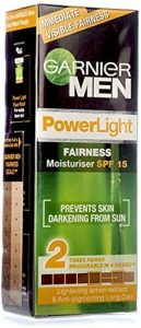 The first moisturizer for men with fairness so intense that you can now measure its performance over weeks. The SPF 15 protection of the Garnier Men Power Light Fairness Moisturizer prevents skin from dark spots and further darkening. It initiates intensive visible fairness from the very first application. It is enriched with brightening lemon extract that helps remove dark dead cell and reveals visibly fairer and smoother skin immediately. It runs under the trademark tag-line of measurable fairness performance day after day. Garnier Men Power Light Fairness Moisturizer is enriched with anti-pigmenting Long Dan which prevents the production of skin-darkening melanin and delivers a fairness result you can measure while intensively reducing dark spots.