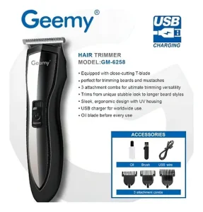 Get precise grooming performance at an affordable price with the Geemy Hiar Trimmer GM-6258 — a versatile tool designed for clean trims, sharp edges, and everyday styling.