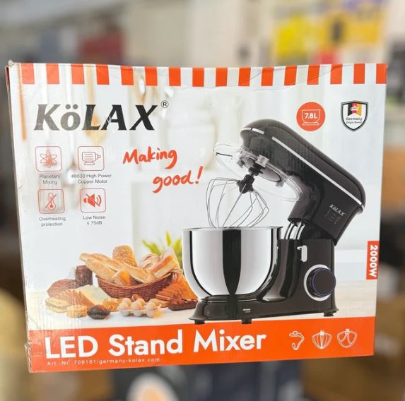 The Kolax 7.8L Stand Mixer is a powerful and reliable kitchen appliance designed for effortless mixing, beating, and kneading. With its large 7.8-liter stainless steel bowl and high-performance motor, it is perfect for baking cakes, whipping cream, and preparing dough. Its multiple speed settings and durable build make it ideal for both home and professional use.