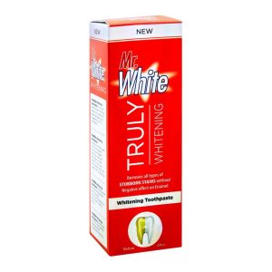 Mr. White – Truly Whitening Toothpaste is specially formulated to deliver noticeably whiter teeth with every brush. Its advanced whitening formula helps remove surface stains caused by coffee, tea, and everyday foods while protecting tooth enamel. Gentle yet effective, it leaves your mouth feeling fresh and clean with long-lasting freshness. With regular use, Mr. White helps restore your natural smile, giving you brighter, healthier-looking teeth you can feel confident about.