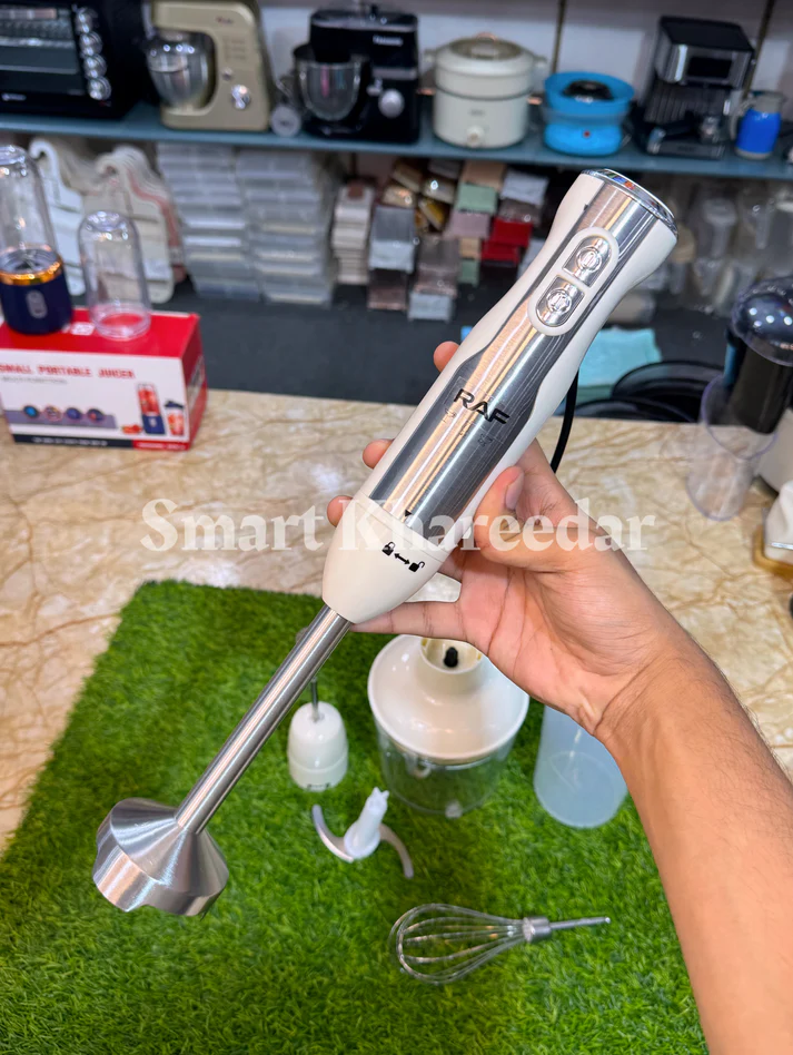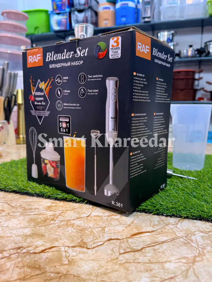 Bring efficiency and versatility to your kitchen with the Raf 5-in-1 Blender Set (Model: R.361) — a multifunctional powerhouse built to handle a wide range of food preparation tasks with ease. Featuring a robust 900 W motor, dual speed control, and multiple attachments, this all-in-one blender makes cooking faster, simpler, and more enjoyable.