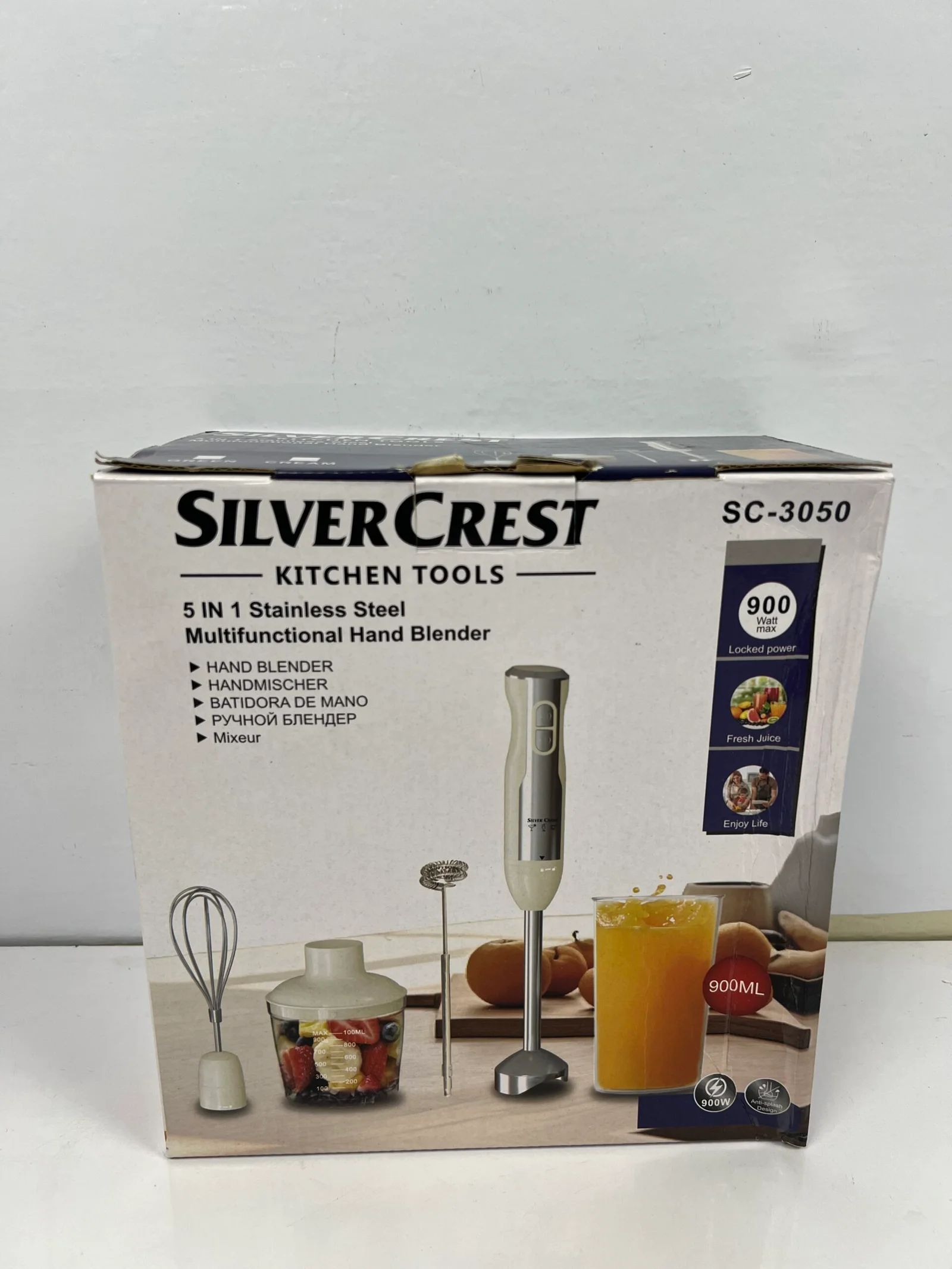 Silver Crest – 5-in-1 Hand Blender – 900W Powerful Stainless-Steel Kitchen Tool Model: SC-3050