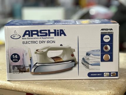 Arshia – Electric Dry Iron Ceramic Soleplate for Smooth Gliding Over Fabrics, 1200W Model: AS2001-9017