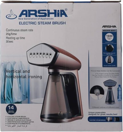 Arshia – Stainless Stell Hand Held Garment Steamer Equipped with a Steam Water Bottle, 1640W