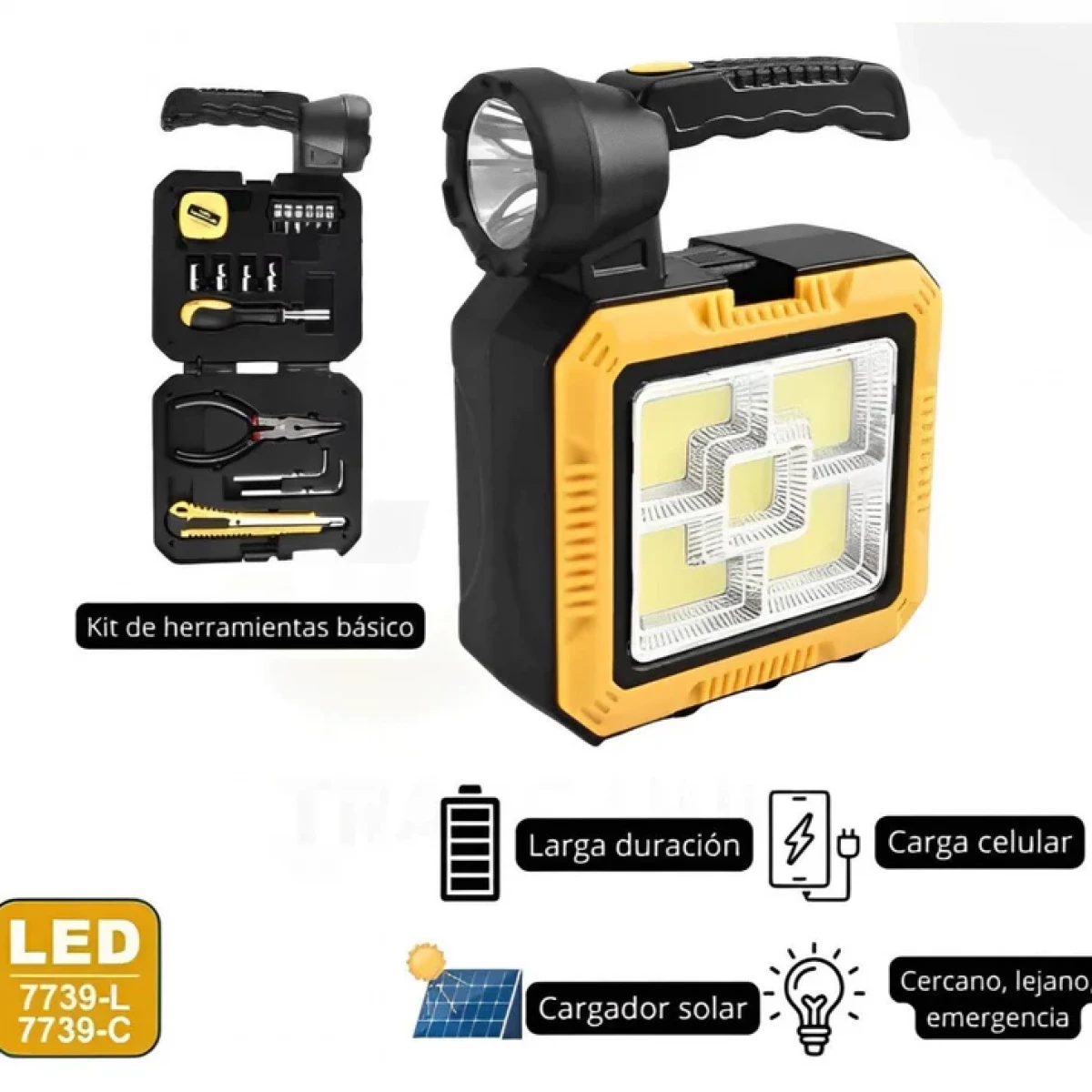 The Solar Portable Lamp with Tool Kit is a versatile and reliable solution for lighting and basic repair needs at home, outdoors, or during emergencies. Powered by solar charging, it provides an eco-friendly and cost-effective lighting option without the need for electricity. The built-in battery display allows you to easily monitor power levels and plan usage efficiently.