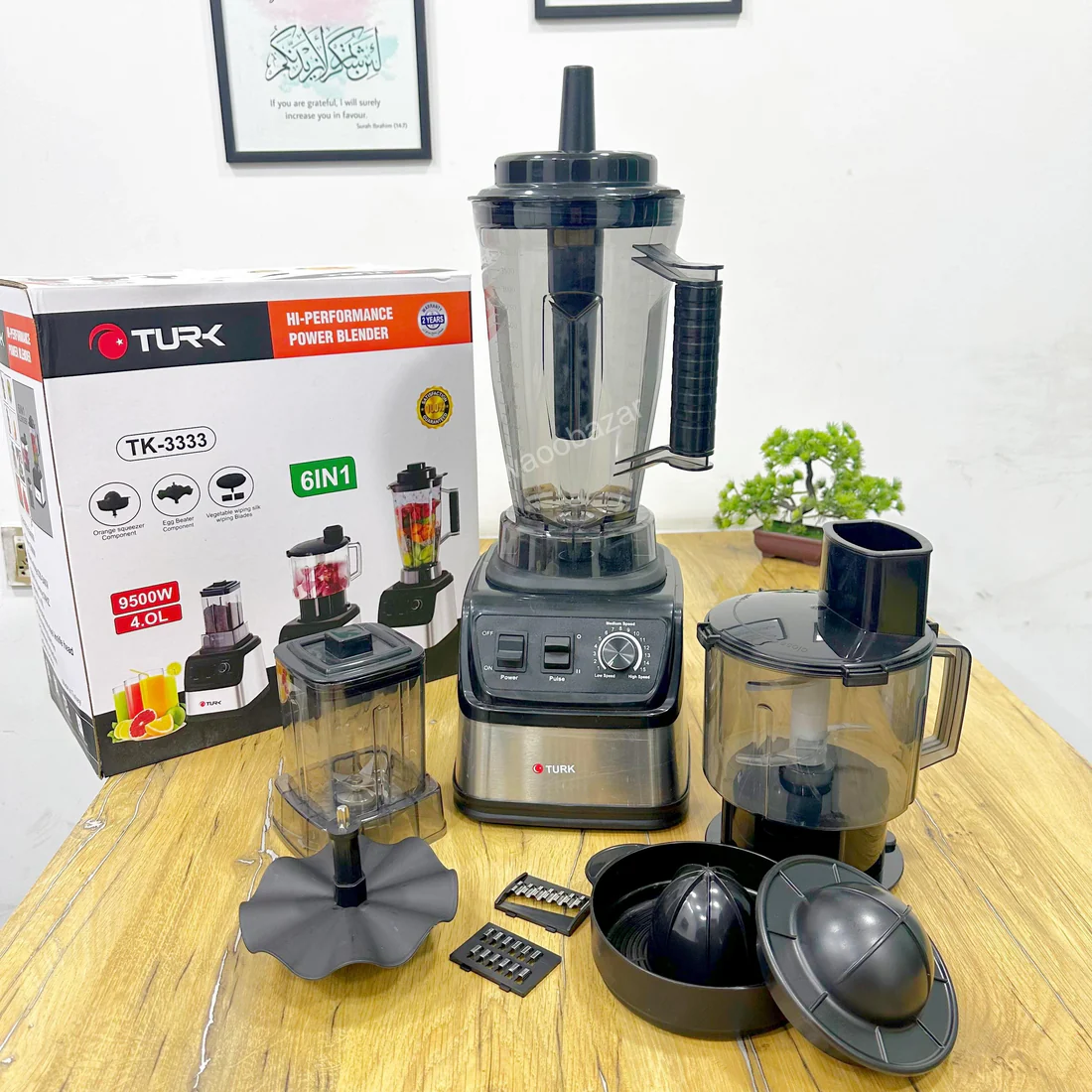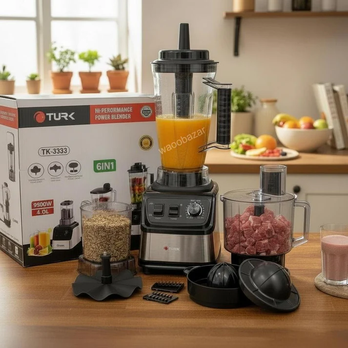 Elevate your kitchen with the Turk TK-3333 Hi-Performance Power Blender — a robust and versatile blending solution designed for everyday cooking and advanced food preparation. Built for power, precision, and convenience, this blender effortlessly tackles a wide range of ingredients, from soft fruits to tougher fibrous materials. (Model name based on brand naming conventions and similar products; exact specs may vary.)